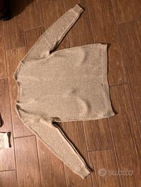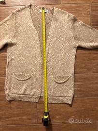 Elegante cardigan in maglia lamé dorato, perfetto per aggiungere un tocco di luce al tuo outfit.