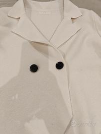 cardigan doppia petto bianco con bottoni neri tessuto lana e viscosa, taglia s ma comoda