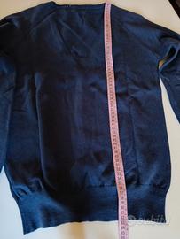 Cardigan blu scuro Zara, taglia XL vestibilità scarsa, misure in foto. 70 % cotone, 30 % nylon. Scollo a V. L'ho provato ma a me non va bene.