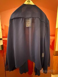 Cardigan blusa morbida di colore blu, in poliestere velato trasparente . Vestibilita’ morbida, taglia calibrara 25 (taglia 48 - 50 donna). Anche ottima come coprispalle abito elegante.
