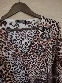 Nuovo cardigan tg M elasticizzato maculato con strass