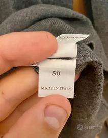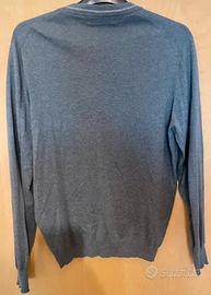 Splendido cardigan Brunello Cucinelli indossato pochissimo. Cardigan colore grigio con bordino rosso e bianco al centro e stupendi bottoni marroni, 100% cotone morbidissimo, taglia 50.
