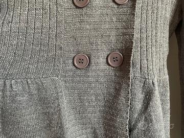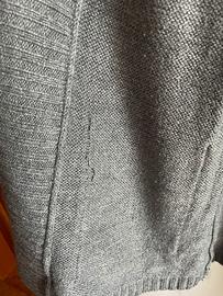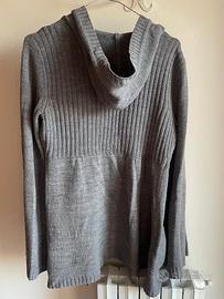 Cardigan invernale leggero con cappuccio tg M-L In buono stato. Grigio. Tessuto invernale ma leggero, con bottoni, tasche e cappuccio. Maniche più larghe sui polsi. È stato usato molto ma il tessuto non ha buchi. Misure: Circonferenza cm 90 Lunghezza cm 68 Maniche cm 61 Spalle cm 42
