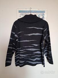 cardigan con cerniera nero/bianco misto lana/acrilico taglia L/XL giro petto cm 110 lunghezza cm 57