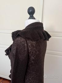 Bellissimo cardigan marrone scuro, in morbida maglia. Mohair 15%. Perfetto per la mezza stagione.
