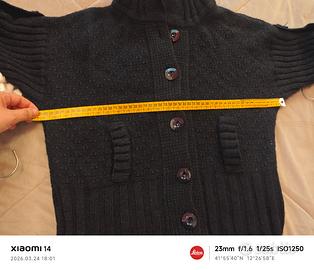 Bellissimo e caldissimo cardigan blu scuro con collo ampio.