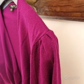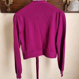 Vendo cardigan cropped di Etro, taglia 40. Aperto con chiusura anteriore tramite due fasce che sono il proseguo della rifinitura bassa del golfino. Color Fucsia, come nuovo perchè usato pochissimo. Dimensioni: - spalla-spalla: circa 34 cm - lunghezza maniche: circa 57 cm - lunghezza busto: circa 40 cm