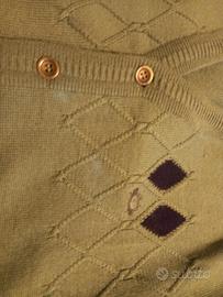cardigan da uomo, indossato poche volte, colore verde bottiglia, con piccolo inserto blu, completo di taschino