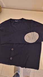 vendo cardigan 7 bottoni marca Dan John con toppe in maglia 70% viscosa 30% nylon col. blu toppe grigio taglia L slim poco usato