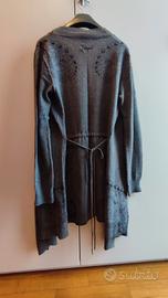 Cardigan DESIGUAL colore grigio taglia M con ricamo paillettes e coulisse con nastro invita.