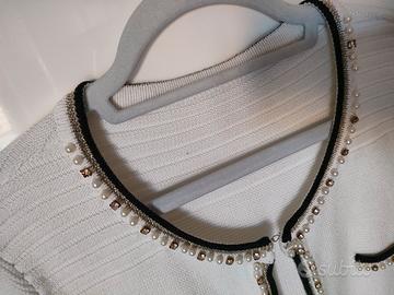 cardigan donna con perle e Swarovski, taglia 42