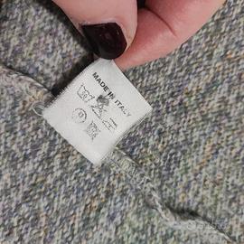 Prodotto da un ottimo maglificio oggi purtroppo chiuso, è rifinito molto bene, ha il colletto, due tasche e grandi bottoni in madreperla, c'è anche il bottone di cortesia