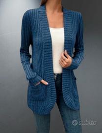 Cardigan Donna Elegante a Tinta unita con Tasche Aperto Frontale