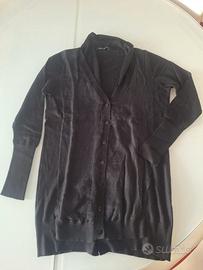 Cardigan donna in maglia nero, marca Penny Black, con riporti in crepe sul davanti, taglia M, come nuovo