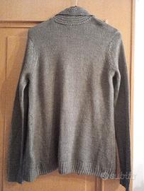 Cardigan marrone con tasche anteriori. Colore marrone. Materiale 95% poliacrilico e 5% fili metallizzati. Marca Flame. Taglia L