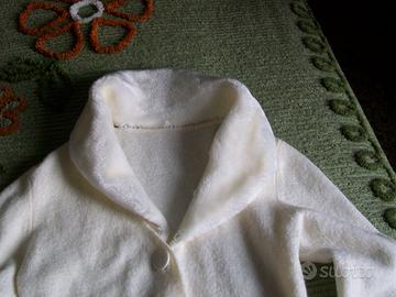 Cardigan bianco panna in morbido filato misto mohair, taglia media.