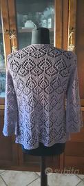 Lavorazione code di pavone. Maniche a tre quarti. Ideale in primavera autunno o nelle serate estive. Un tocco di stile con gli outfits basici. Viscosa acrilico poliammide. Lilla tendente al viola