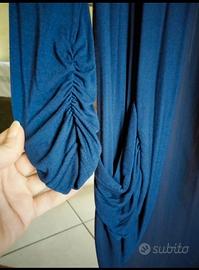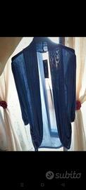 bellissimo cardigan blù scuro.da notare la particolarità delle maniche increspate.due tasche anch'esse increspate.sul didietro e tutto trasparente. taglia unica. Nuovo con cartellino.