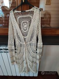 Un bellissimo cardigan, elegante e di classe, anche con una certa eleganza sensuale. Adatto come copri vestito e persino come copri costume o copri intimo. Marca Morgan. Taglia unica