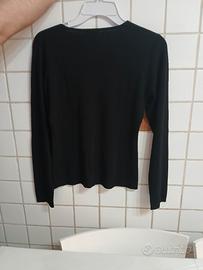 grazioso cardigan estivo in cotone nero elasticizzato con strass davanti scollatura a V maniche lunghe aperto davanti con bottoncini tg 44 larg spalle 35cm lung. 53 cm