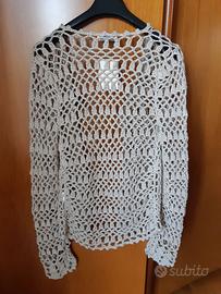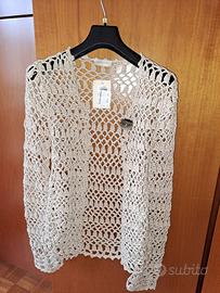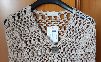 Cardigan aperto sul davanti con maniche lunghe taglia 42, color grigio corda, mai indossato, da mettere sopra un vestito smanicato, oppure da abbinare ad un top o una canotta. Ideale per l'autunno e la primavera o per le serate estive un po' fresche.
