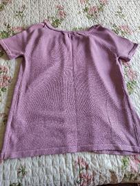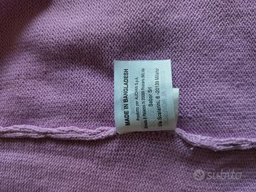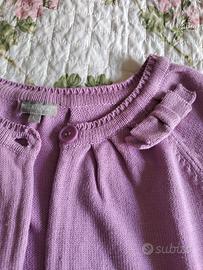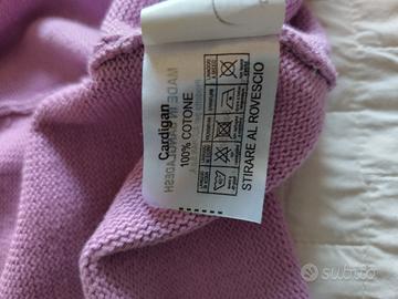 Cardigan filo di cotone 100% color rosa-glicine, maniche corte, un bottone n alto per chiusura e fiocchetto laterale sulla scollatura. Nuovo mai indossato . Taglia 44.