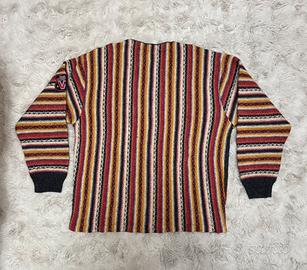 •Cardigan uomo vintage Foxhound •Motivo jacquard a righe e rombi, colori vivaci: rosso, giallo, bordeaux, nero, bianco •Taglia stimata: M/L uomo (lunghezza 64 cm, spalle 51 cm) •Materiale: misto cotone/acrilico (etichetta sbiadita) •Chiusura frontale con bottoni, scollo a V •Ottime condizioni, capo unico e originale Prezzo: 40€