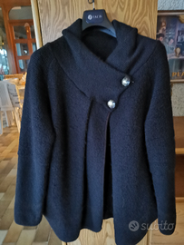 - Cardigan nero in lana molto calda. Con tasche. Allacciatura al collo con 2 bottoni.