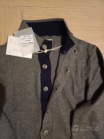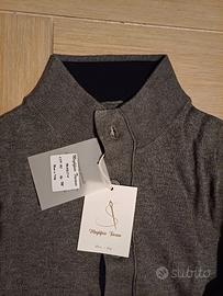 Cardigan grigio e blu Maglificio Toscano nuovo mai usato con cartellino. Taglia M. 45% viscosa, 20% lana, 20% cachemire, 15% cotone. Vendo per taglia sbagliata