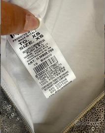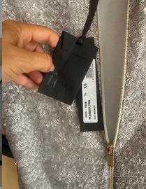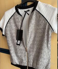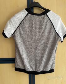 Cardigan Hanita con zip centrale e maniche corte. - Parte anteriore e posteriore interamente ricoperta di paillettes. - Maniche in tessuto bianco, foderata in tessuto internamente. Tg XS ma veste anche la S