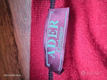 Cardigan in cashmere rosso con toppe in camoscio, mai usato. Taglia media