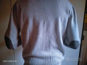 Cardigan da uomo in cashmere beige con toppe ai gomiti, mai indossato. Taglia media
