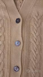 Cardigan da uomo in 100% cashmere di Riccardo Piacenza. Taglia riportata: 44 (larghezza sotto le ascelle approssimativamente 61cm- vedi foto). Di color senape. Due piccoli difetti, vedi foto (una piccola scucitura da sistemare; piccola macchia molto lieve a sinistra del secondo bottone in foto n.5). Per il resto in condizioni perfette.