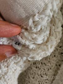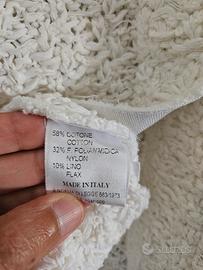 Nuovissimo cardigan Base Milano in lino e cotone Colore bianco Chiusura con automatici a scomparsa Maniche 3/4 Taglia 44 ma veste una taglia 42