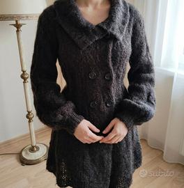 Cardigan giacca in maglia a doppio petto marrone scuro, caratterizzato da maniche a sbuffo e un ampio colletto. Tessuto in lana mista mohair. Chiusura a bottoni a gancio come in foto, quelli classici sono solo estetici. Morbidissimo e molto delicato. Stile vintage con piccola fascia con bottoni dietro per stringere la vita. Misure -> distanza spalle 55cm, distanza ascellare 50cm, lunghezza maniche 60cm, lunghezza totale 80cm dietro e 90cm davanti. #vinteditalia #estate #mohair #jeans #femme #shorts #vintedfrance #vintedspain #vintedcloset #vintagestyle #fashion #chic #vintage #summer #winter #autumn #spring #indie #hipster #aesthetic #alternative #basic #sport #indie #kids #mancheslongues #man #lana #uomo #vendocapi #saldi #sales #outfitoftheday #outfit #set #sconti #arte #art #woman #gold #silver #cashmere #lana #coat #raincoat #giacca #parka #kawaii #coquette #crochet #japan #korean #qipao