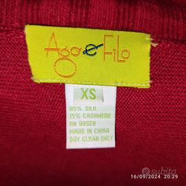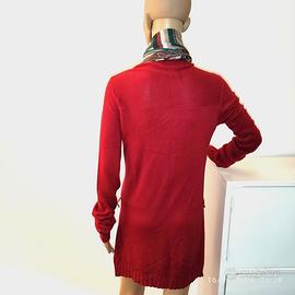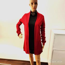 Vendo elegante cardigan in seta e cashmere, midi, senza bottoni, marca Ago e Filo, colore rosso, indossato pochissime volte in perfette condizioni. Misure in cm: spalle 38, lunghezza 85, manica 62, taglia XS. Vero affare
