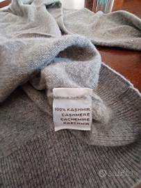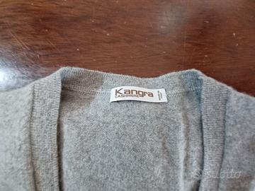 Cardigan Kangra grigio in puro cashmere taglia 54 con toppe ai gomiti originali in vera pelle.