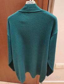 Cardigan Lana Merinos Petrolio Aperto Oversized