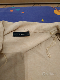 Comodo cardigan colore beige, senza bottoni allacciatura in vita, da utilizzare anche come soprabito per la sera