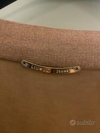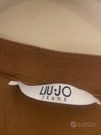 Cardigan lungo senza maniche LIU JO Jeans da donna, colore cammello: •scollo a V con chiusura a un bottone •tessuto leggero e fluido •lunghezza sotto il ginocchio circa •due ampie tasche frontali drappeggiate •placchetta metallica con logo sul retro
