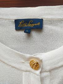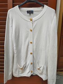 Elegante cardigan Luisa Spagnoli, perfetto per aggiungere un tocco di classe al tuo guardaroba. - Chiusura frontale con bottoni dorati. - Tasche applicate sul davanti con bottone. - Scollo rotondo.