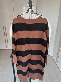 Cardigan lungo a righe nere e marroni con tasche in pellicciotto nero. Caldo e soffice, una coccola in cui avvolgersi nei mesi freddi.