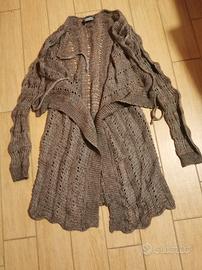 Cardigan lungo in lana lavorazione artigianale, colore tortora in ottime condizioni usato poche volte