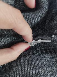 Bellissimo cardigan lungo boho vintage Joseph Ribkoff taglia 48 italiana, tessuto morbidissimo, collo sciallato con bordatura in pellicciotto sintetico. Abbottonatura interna con laccetto e sul davanti con bottone e attache, bisogna rinforzare alcuni bottoni come evidenziato in foto. Ci sono delle maglie allentate come evidenziato in foto ma è una cosa che non si vede proprio. Ci può essere qualche nippolino facilmente removibile con un levapelucchi. L' etichetta interna è stata tagliata perché mi dava fastidio come evidenziato in foto