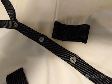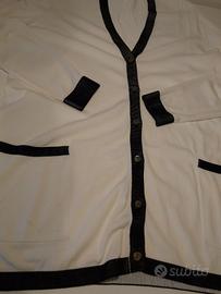cardigan donna, in maglina leggera,( viscosa), con profili e bottoni blu, taglia S conformata modello lungo, ottimo per occasioni i e cerimonie
