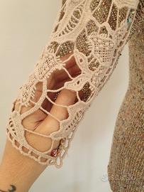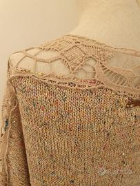 in perfette condizioni, pari al nuovo, cardigan melange Elisa landri, Tg M, piccole pailettes, pizzo color rosa antico sulle spalle e sulle maniche,maniche 3/4, tasche anteriori
