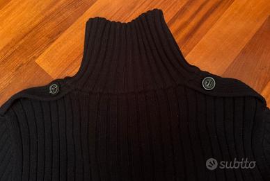 Elegante cardigan in maglia nero, con un design a doppio petto e colletto alto.