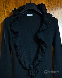 Cardigan copriabito nero in maglia nera con trama a costine.