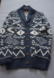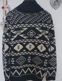 Cardigan pesante disegni nordici blu e beige. Usato pochissimo.
