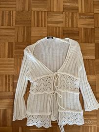 Vendo cardigan donna, di colore panna con doppia allacciatura.